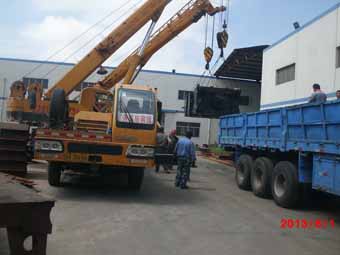 2013年5月16日—6月7號(hào)黃島區(qū)全能重工老廠搬新廠40噸鏜床等設(shè)備拆裝吊裝安裝拖拉現(xiàn)場(chǎng)。