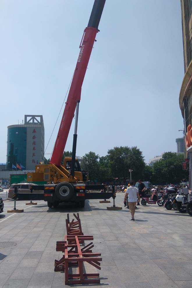 50噸吊車租賃助力泰安汽車站對(duì)過商場(chǎng)設(shè)備吊裝