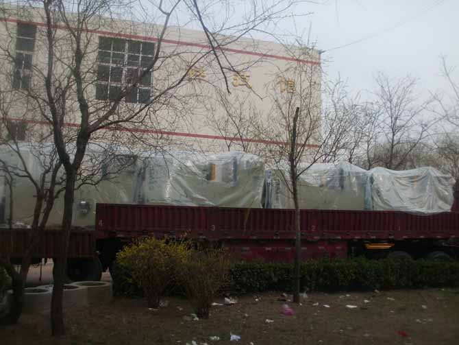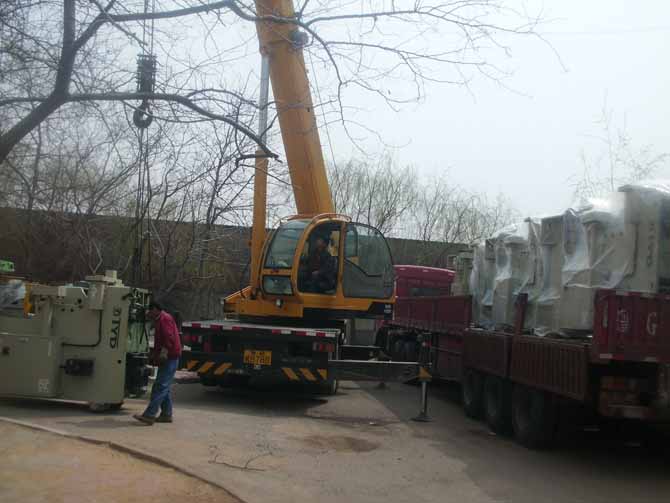 2013年3013年4月3號青島城陽區(qū)雙埠工業(yè)園協(xié)和電子有限公司設備吊裝拖拉就位。