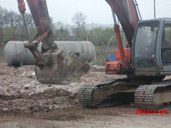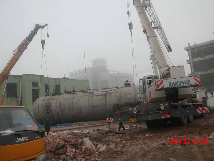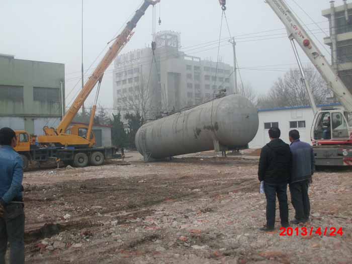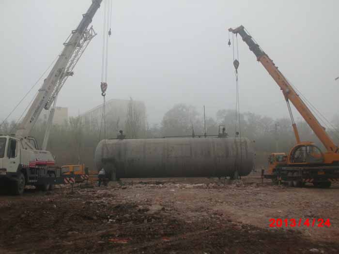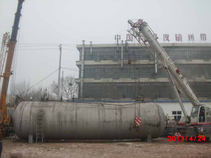 2013年4月24日青島橡膠六廠28噸大罐吊裝現(xiàn)場。